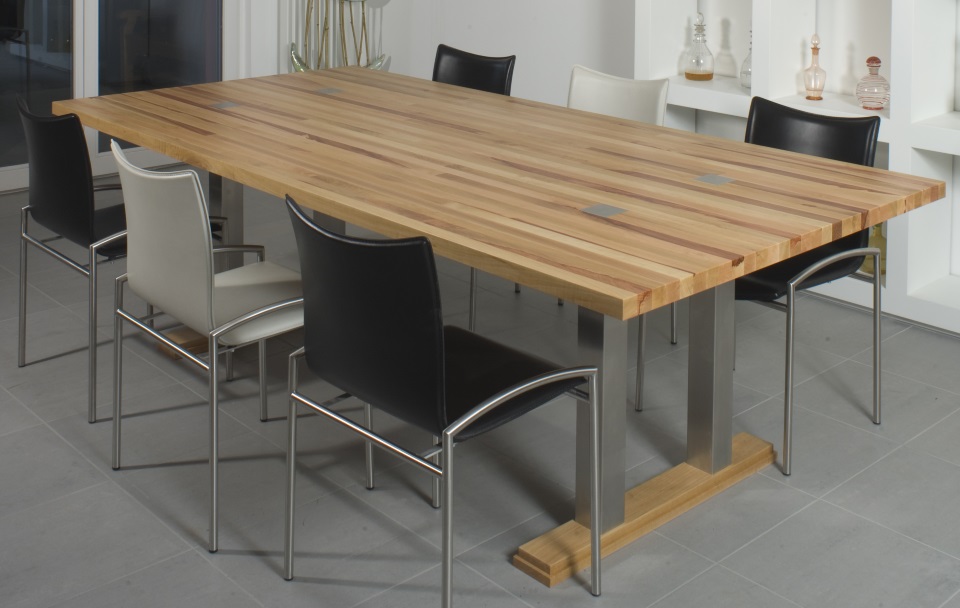 Die Chromtischbeine sind durch Einlagen im Tischblatt markiert.